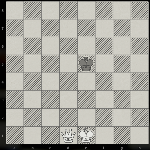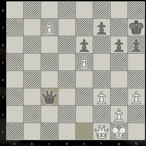 白の手番。白のクイーンがどこに動いても、c7のポーンを守ることができない不思議な陣形です。