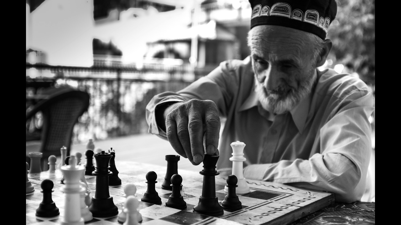 チェスプレイヤー写真は、「人間×チェスセット×真剣な眼差し」で構成されます。